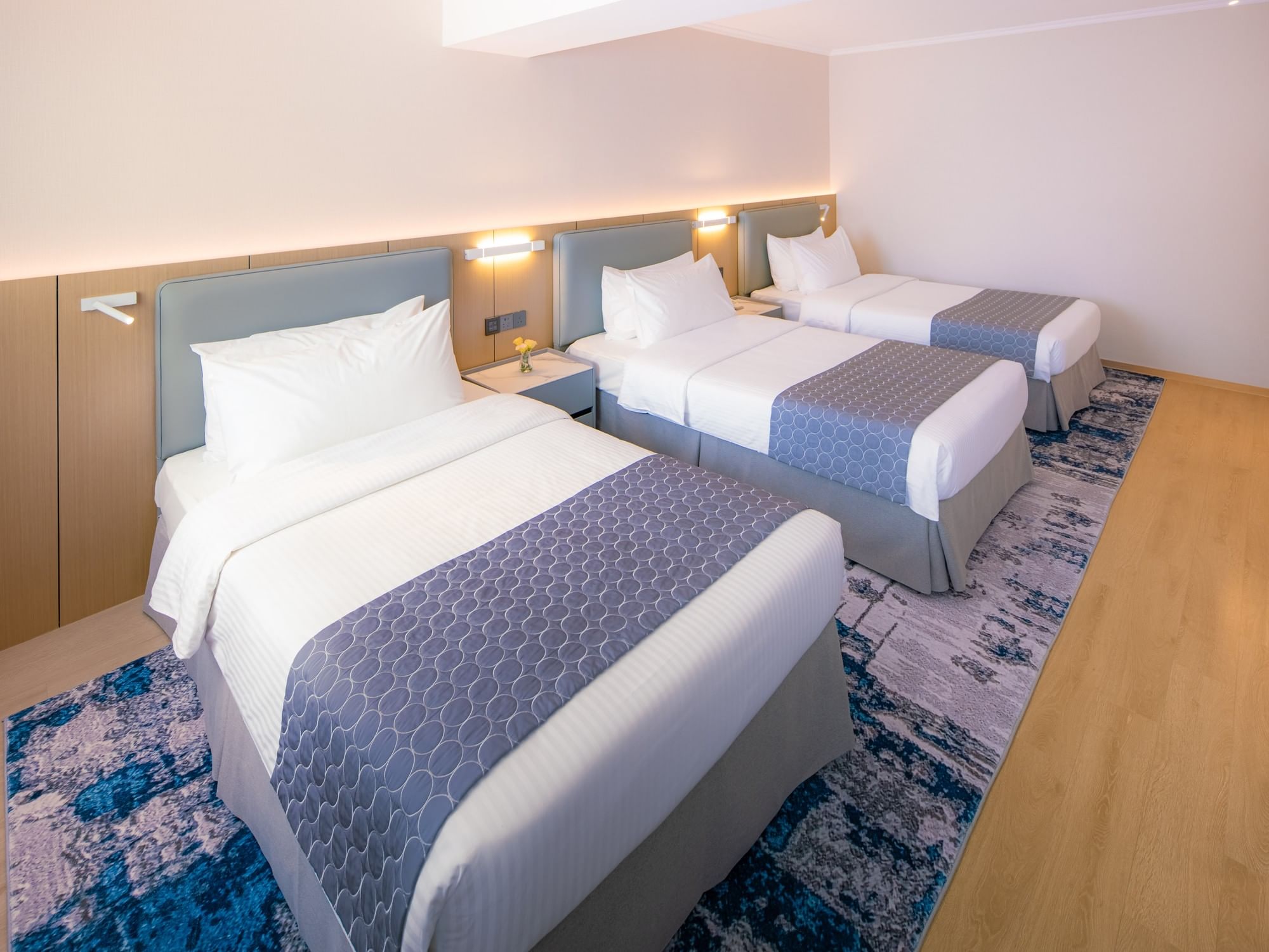 Designed for small groups, the Deluxe Triple Room features three comfortable single beds with premium bedding to ensure a high-quality sleep experience for every guest.